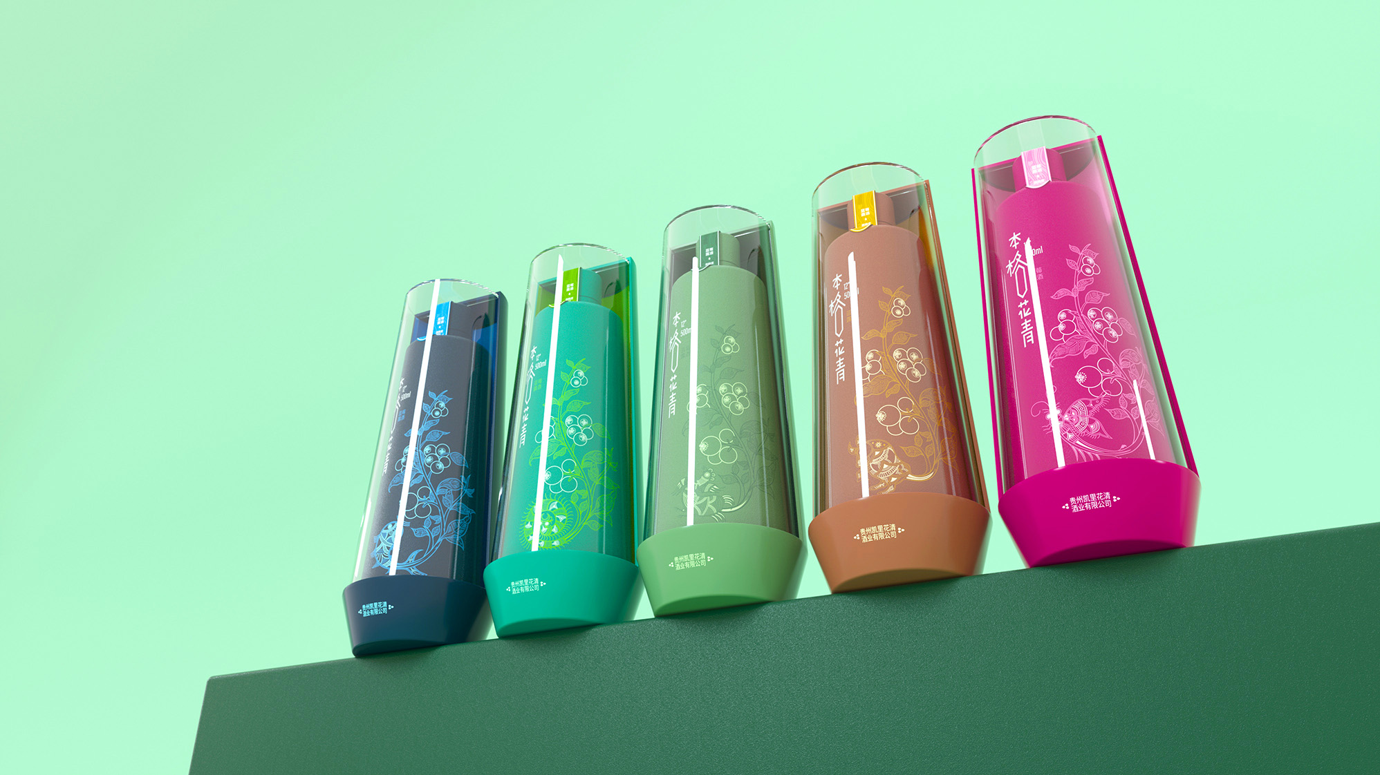 历时一年,本格花青酒再次进行升级设计,首先贵州步道创意团队对品牌原有的主识别符号进行了升级,因为贵州步道创意团队发现“本格花青”主识别符号难以进入消费者心目中,同类型产品同质化较多,无法突出品牌。针对这个问题贵州步道创意团队对主识别符号进行了升级,区别于品牌同质化产品,具有差异性,独特性,便于消费者识别。容器方面,摒弃原有的瓶体,改用异型瓶并沿用原有磨砂质感,增强视觉感官,同时也起到防滑作用。包装方面,摒弃原有常规包装,改用透明亚克力和塑料PVC材质异型盒。我们将产品进行突破性的打造,打破传统的包装样式,让产品深入消费者的心中,成为新的吸引点。