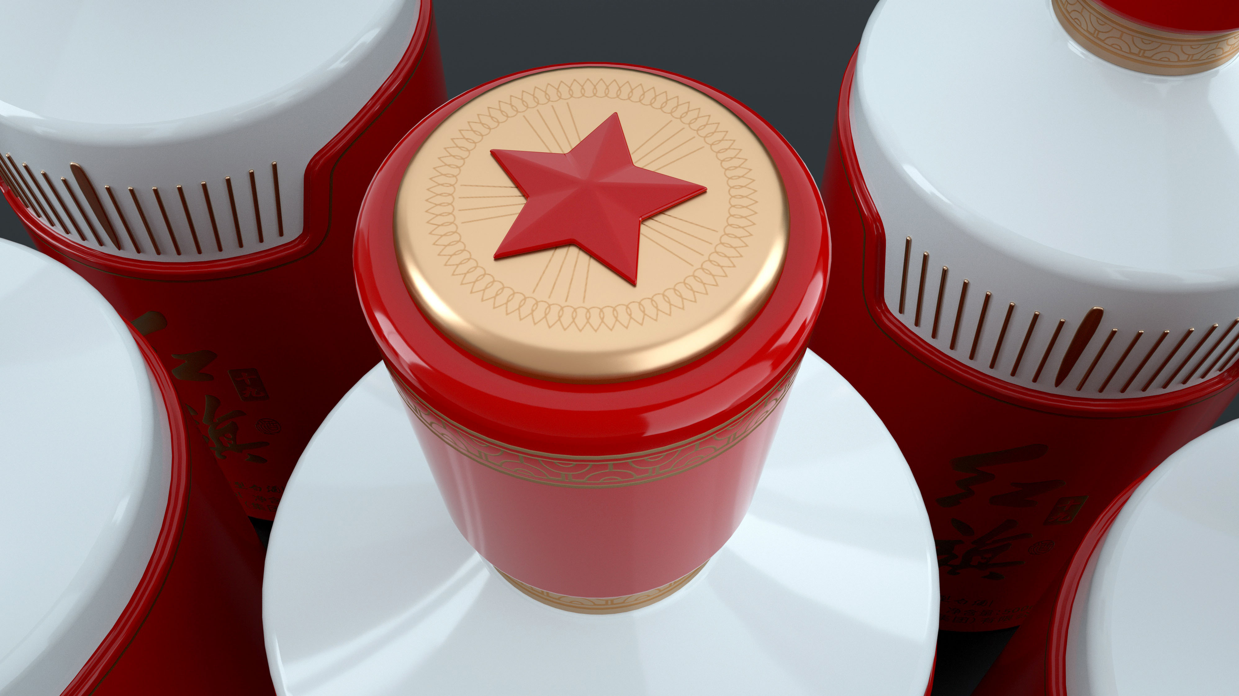 为致敬红色文化,无忧酒业隆重推出了红旗十九这款酱香型白酒。在对项目分析调研之后,我们提取了人民大会堂顶灯的元素作为瓶盖装饰图形。