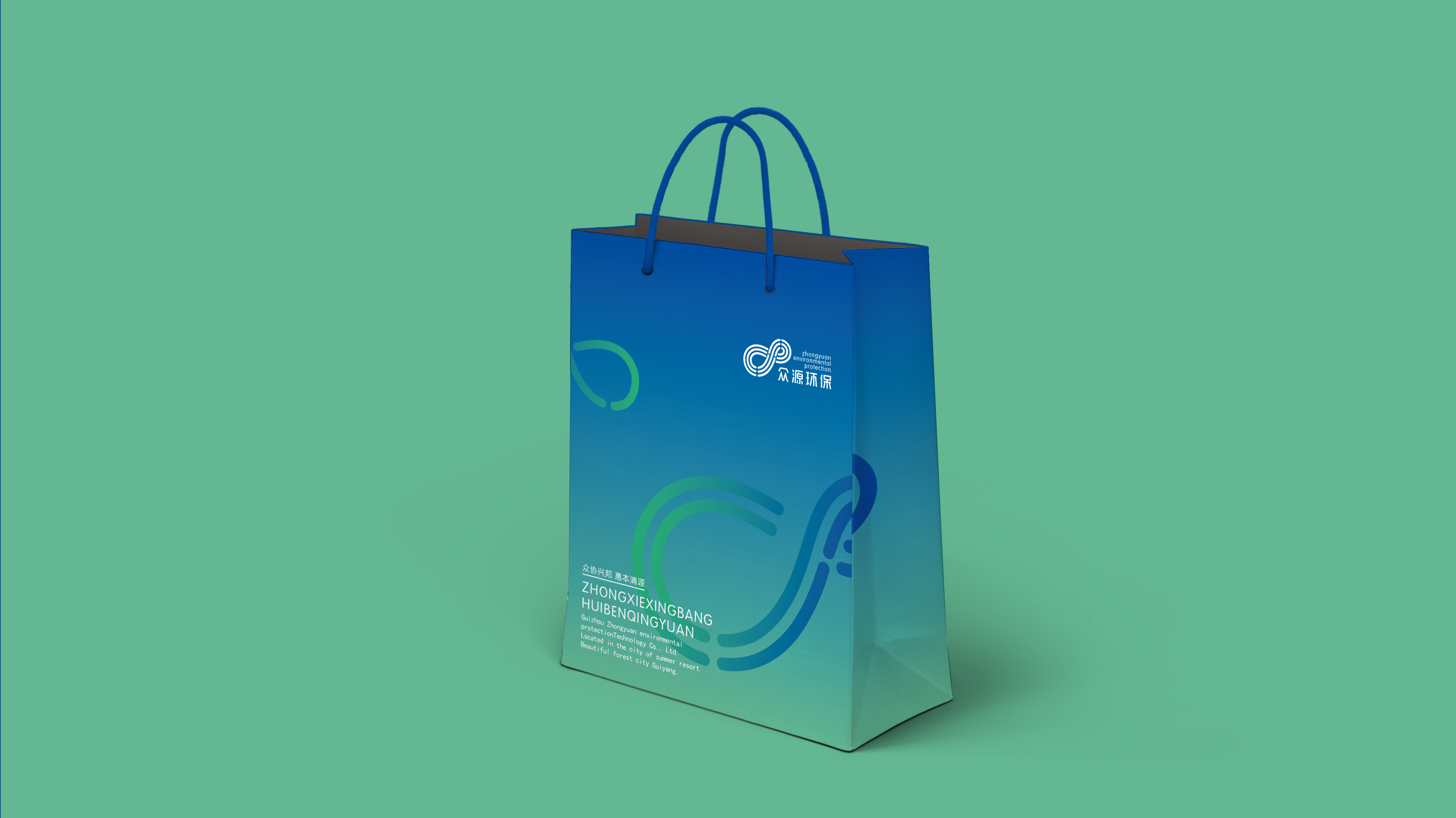 众源环境logo整体向上的态势,突显企业创新精神及追求卓越精神,且充满积极的正能量。蓝绿色渐变寓意环保绿色,自然和谐,无限发展的前景;颜色代表青山绿水体现出贵州的区域特色。logo整体设计简约稳重,有现代感,立意脱俗。